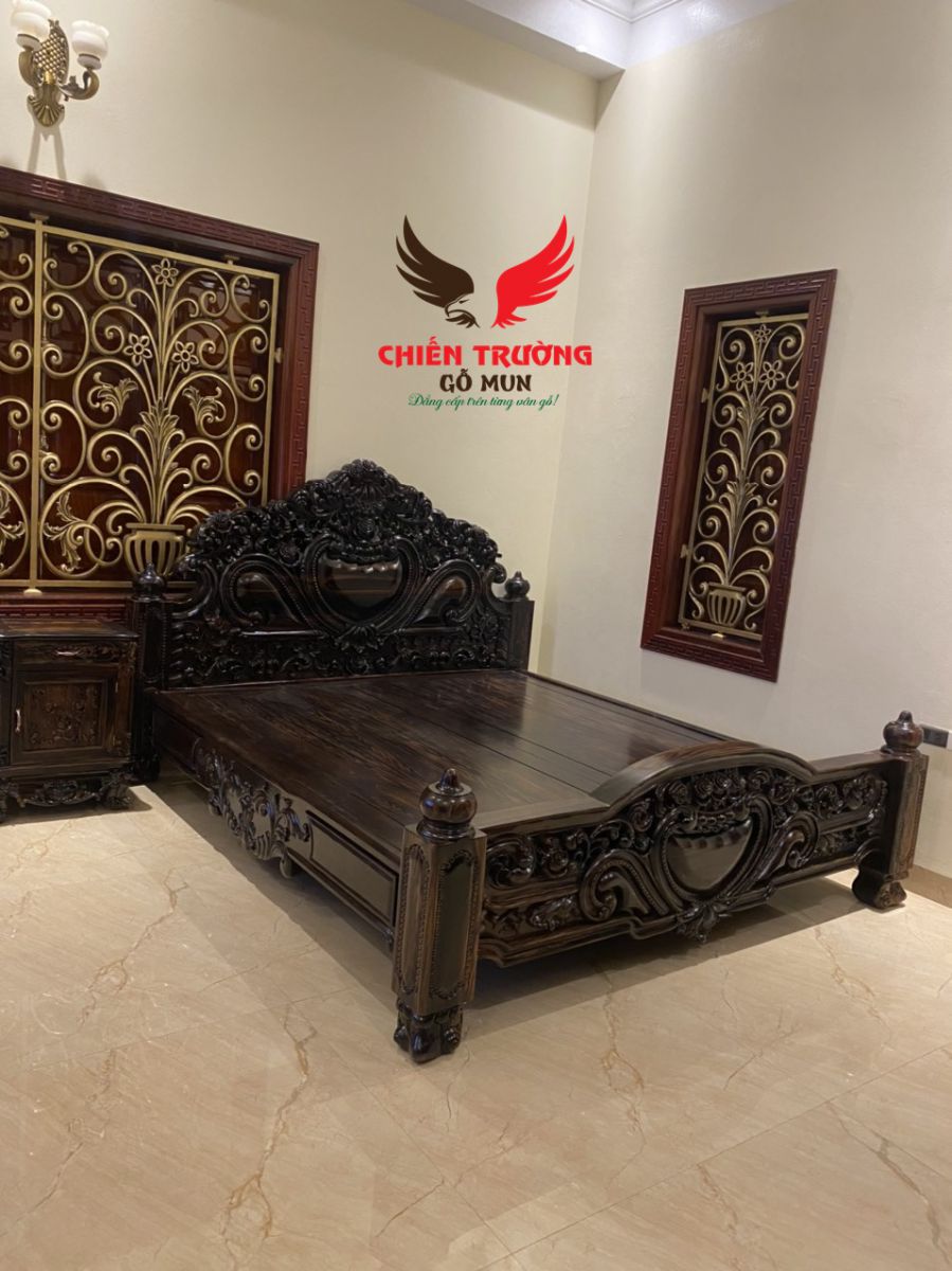 Giường với chất liệu gỗ mun đẳng cấp