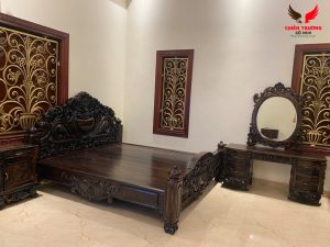 Giường ngủ tại 𝐂𝐡𝐢𝐞̂́𝐧 𝐓𝐫𝐮̛𝐨̛̀𝐧𝐠 𝐆𝐨̂̃ 𝐌𝐮𝐧 được làm từ những tấm ván gỗ mun dày nên chúng sở hữu những ưu điểm như: chất lượng gỗ tốt, khả năng chịu được khí hậu của Việt Nam nóng ẩm mưa nhiều, hay khả năng chịu lực tốt khi được xử lý hoàn thiện, loại bỏ ẩm mốc, mối mọt.