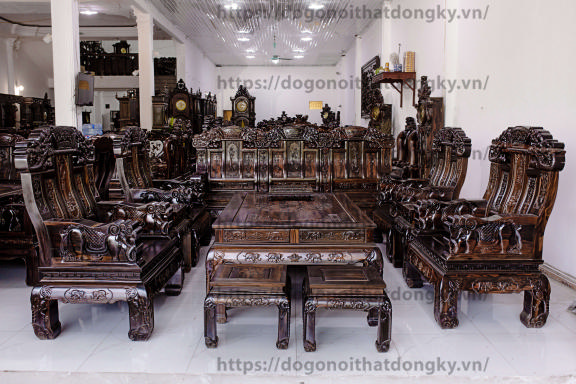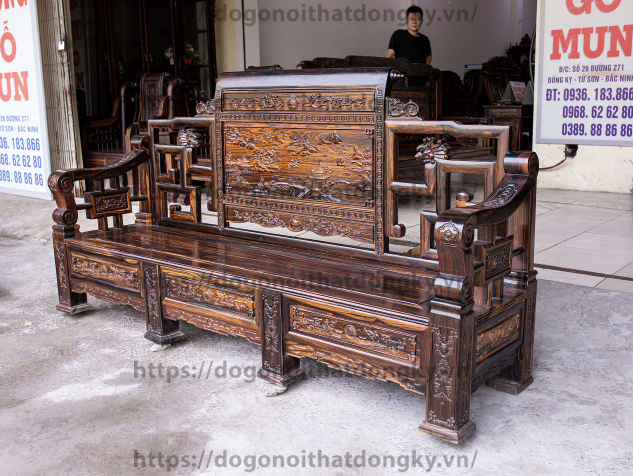Chiến Trường Gỗ Mun nhập khẩu gỗ mun Lào chắc nịch, đanh cứng, hệ thống vân đẹp mê hồn kết hợp với nghệ nhân làng nghề gỗ Đồng Kỵ truyền thống lâu năm.