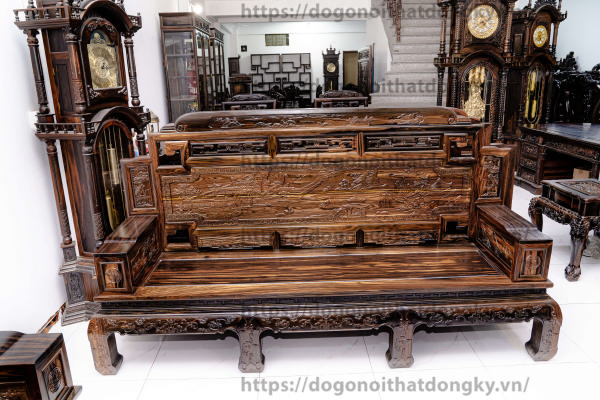 Tất cả đều được chế tác từ gỗ mun Lào nhập khẩu, không cong vênh hay mối mọt, bền đẹp với thời gian, có tuổi thọ sử dụng lên tới hàng trăm năm.