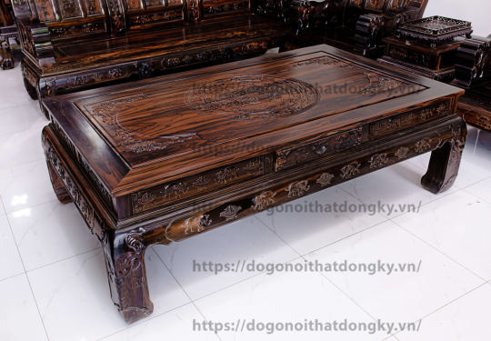 Đặc biệt bộ bàn ghế được làm bằng gỗ mun màu đen huyền bí lại càng phù hợp với phong cách cổ điển đầy sang trọng.